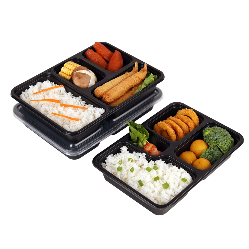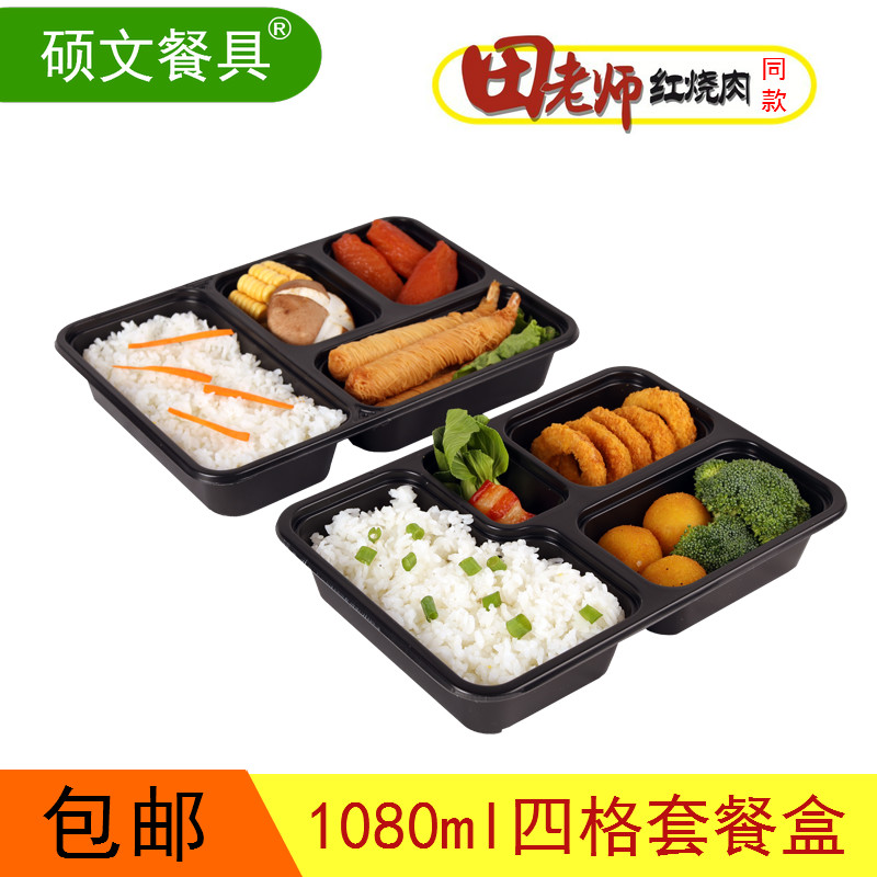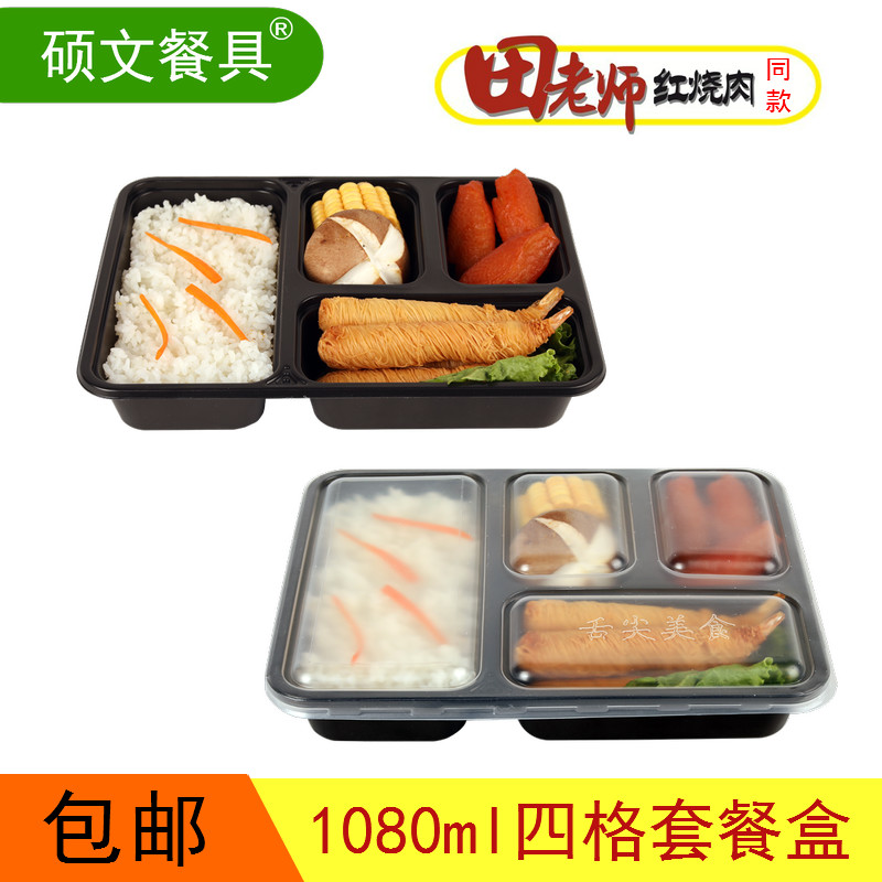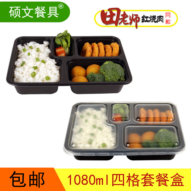 Disposable four-grid meal kit black with lid square packed boxfield teacher with the same business takeaway package boxed boxed box