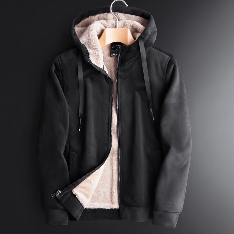 Middle-aged sweater men's casual dad plus velvet thickened loose hooded winter fleece brushed coat winter outer clothes