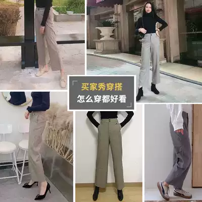 Hairy wide leg pants women's autumn and winter high waist drape feel nine points thin casual suit pants loose straight pants winter pants