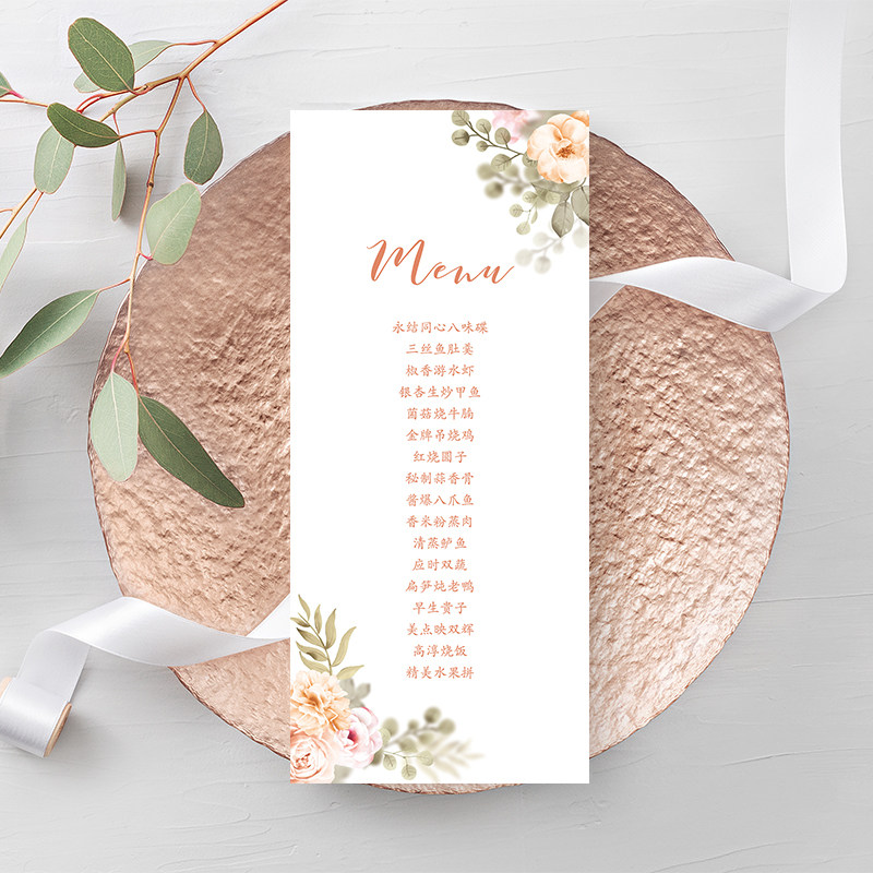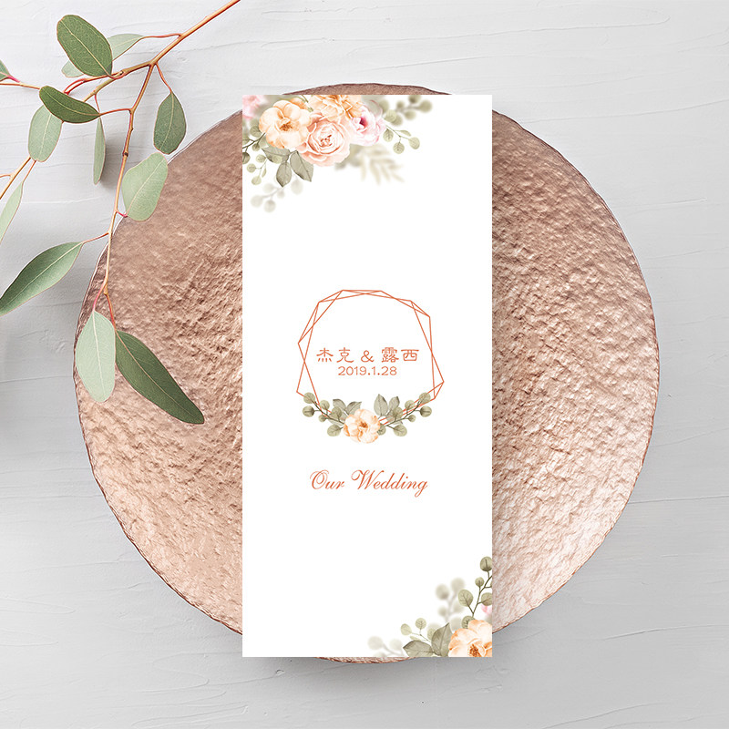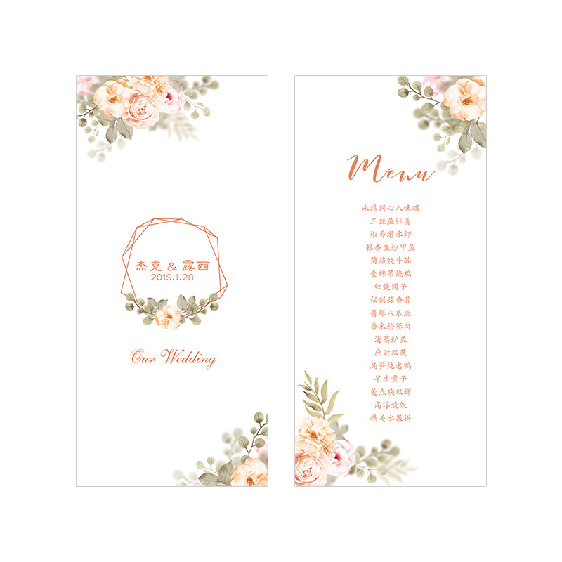 Wedding pink forest menu customization process card recipe thank you card dinner plate card tail tooth baby feast hundred-day banquet