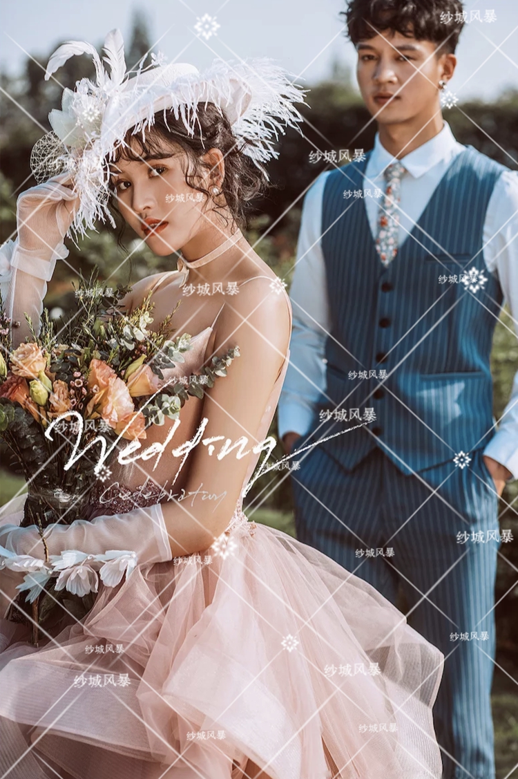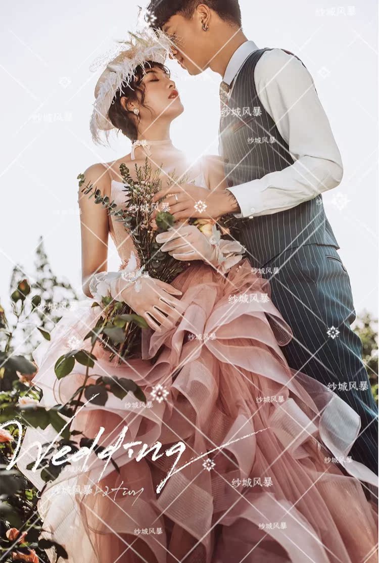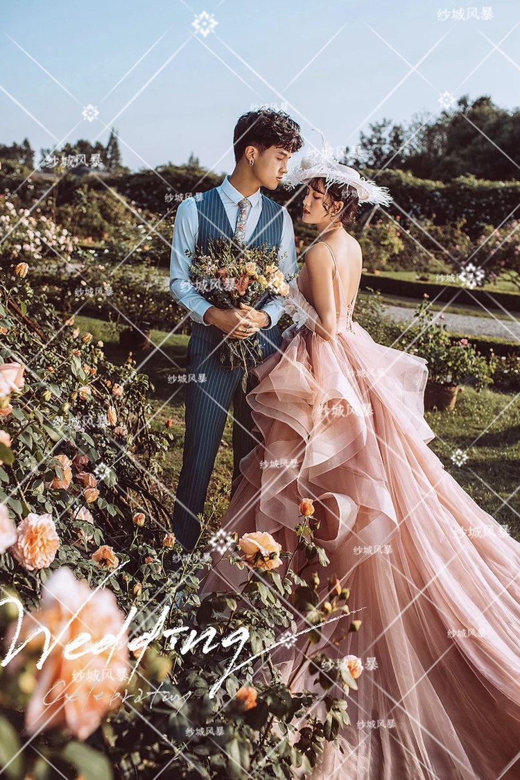 2019 new theme wedding photo studio couple photography clothing travel photography sweet pink suspender long tail dress