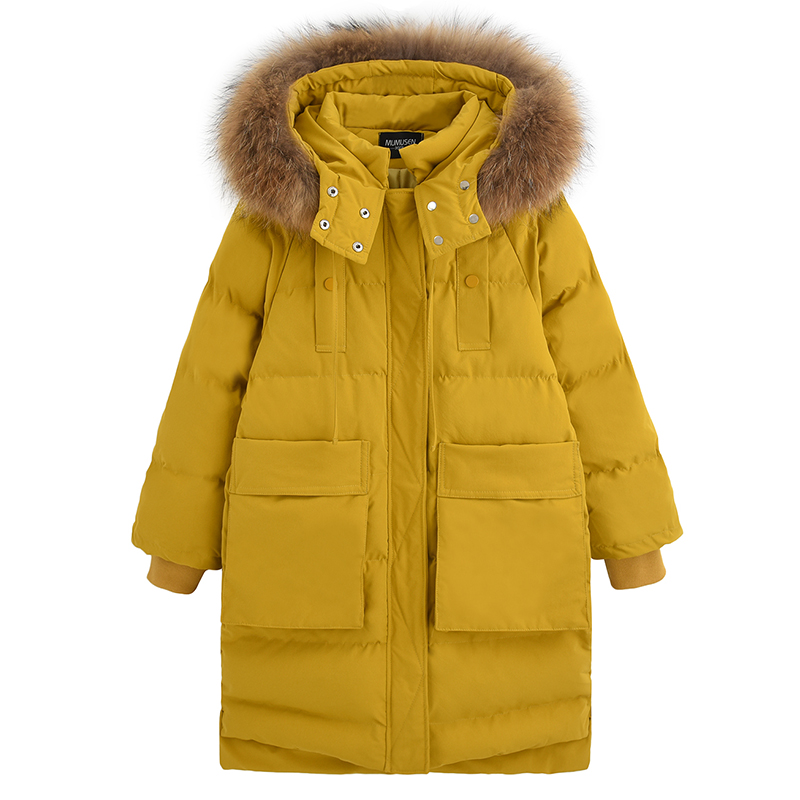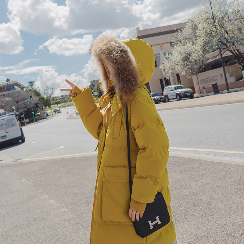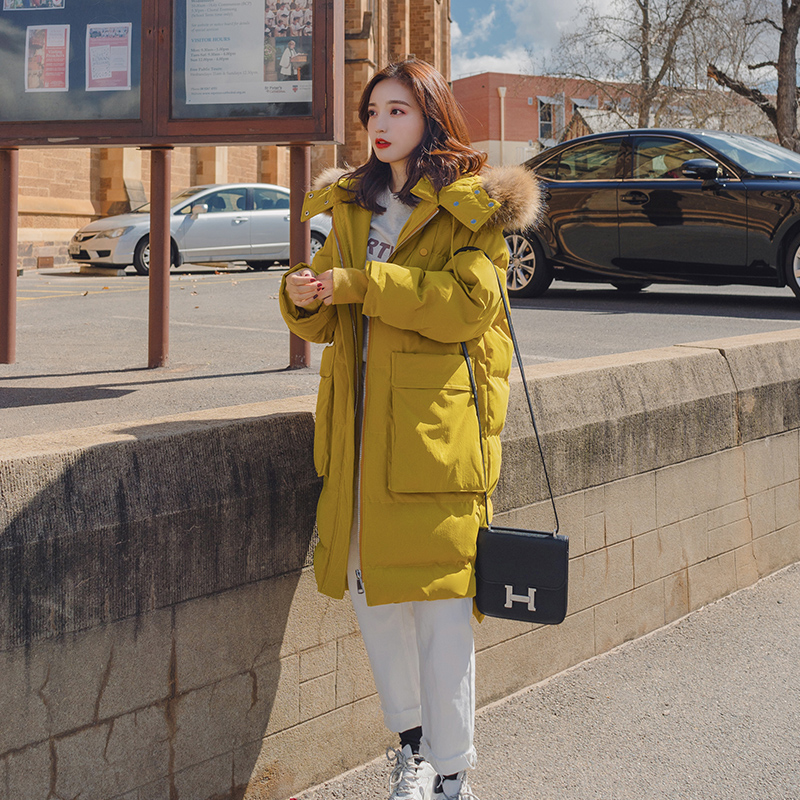 Yellow down cotton clothes female medium long version 2021 Winter new Korean version Chains Chains overfire thickened cotton padded jacket