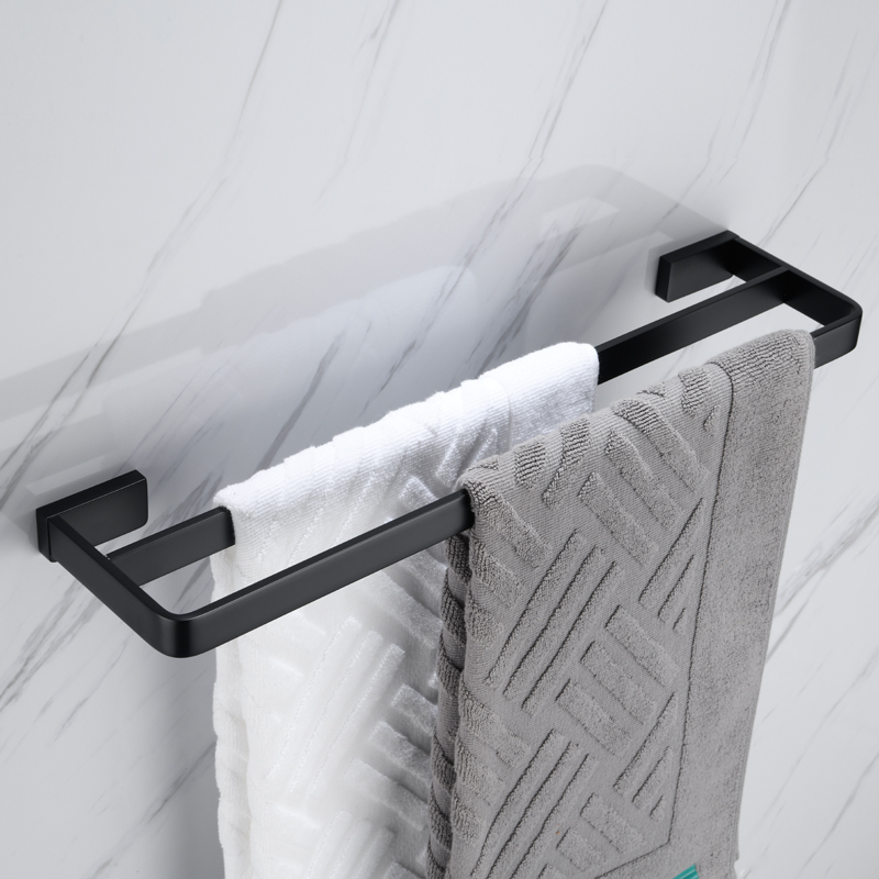 New German All Copper Solid Bathroom Matte Black Towel Double Rod Powder Room Towel Hanging Towel Rod Bathroom