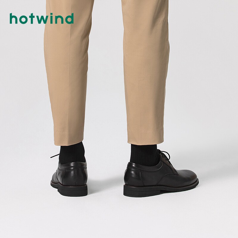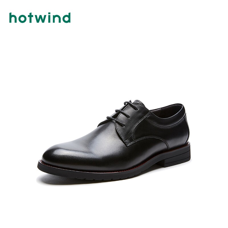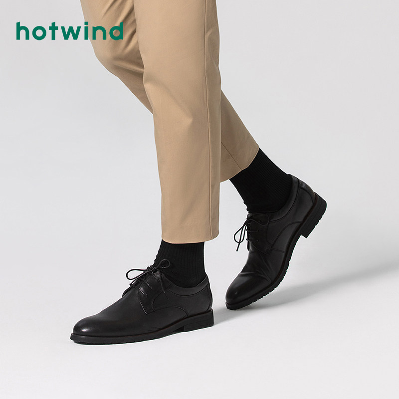 Hotwind flat-bottomed business formal leather shoes men's British style black casual shoes wedding shoes Korean style trendy