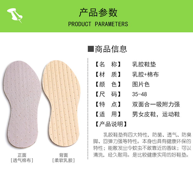 2 pairs of latex insoles men's and women's sports and leisure leather shoes insoles breathable and comfortable, soft, deodorant and sweat-absorbing