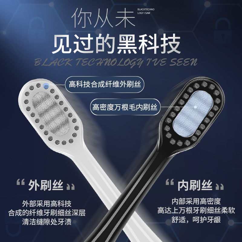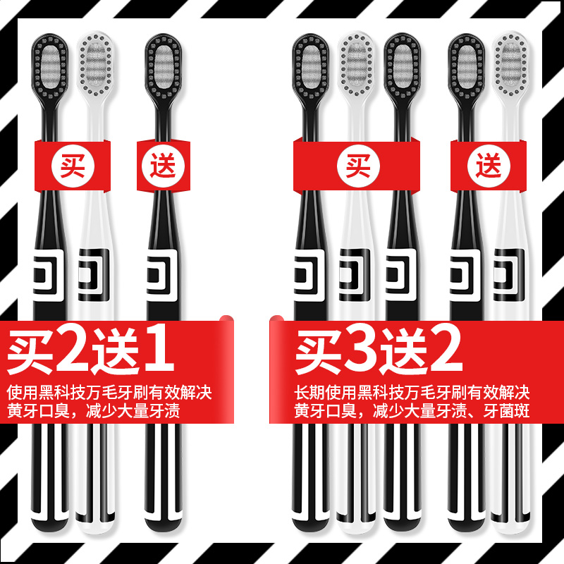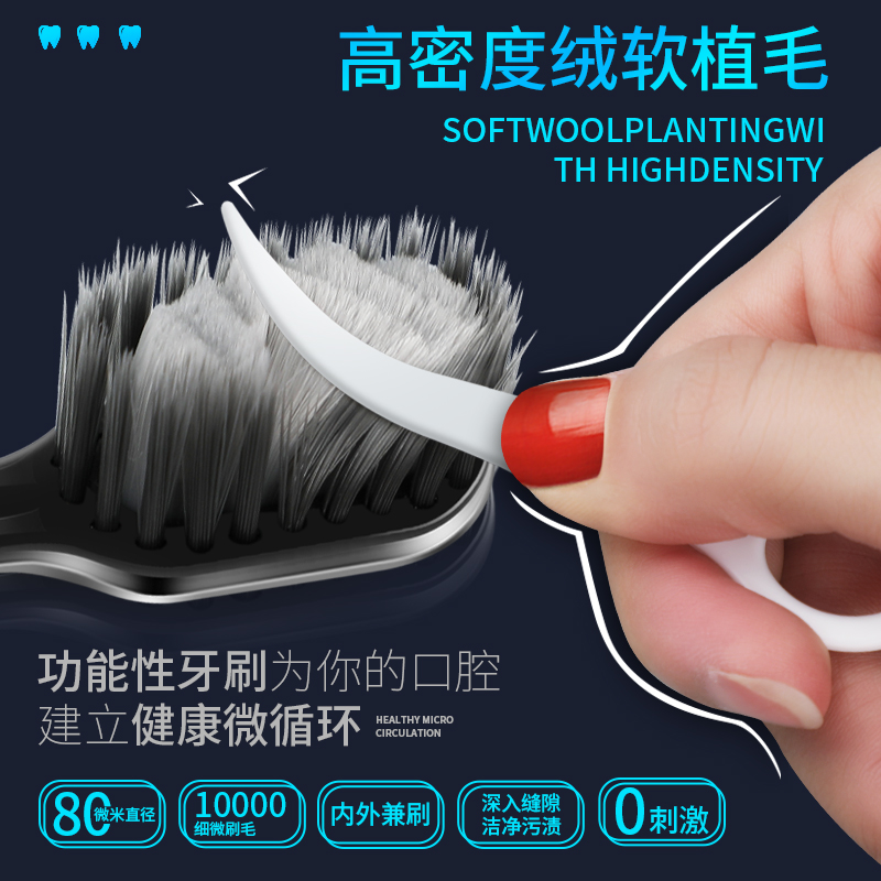 Black technology Wangen hair toothbrush soft hair adult ultra-fine ultra-soft small head oral cleaning teeth gap brush tongue coating brush men and women