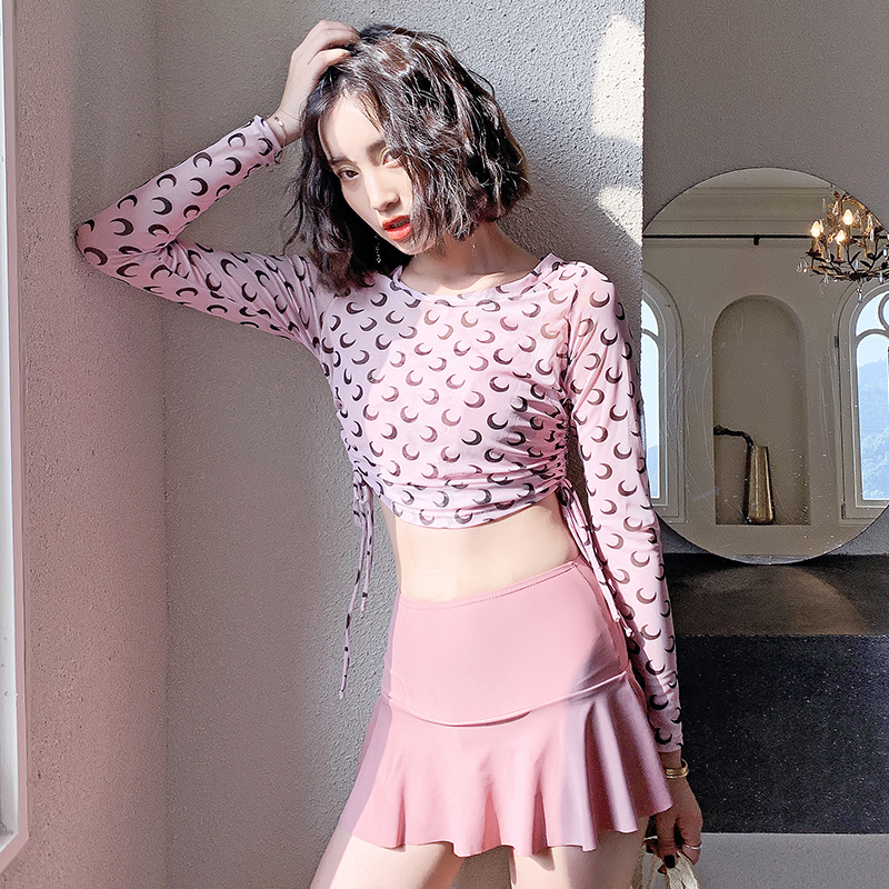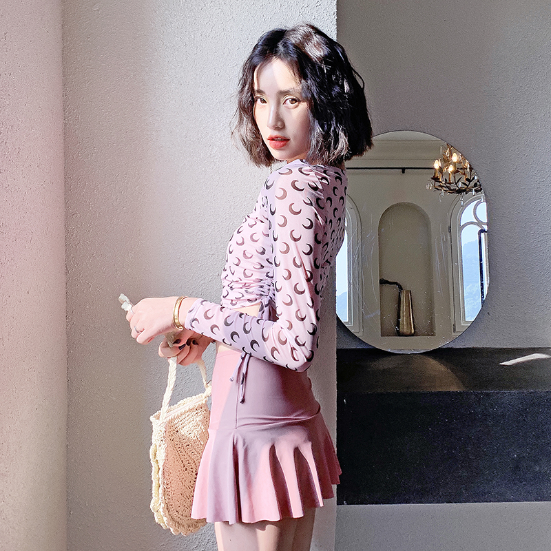 Long sleeve swimsuit woman 2021 new two-piece South Korea Ins wind display slim conservative sunscreen hooded spa swimsuit