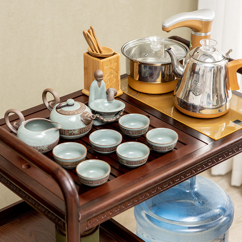 Mobile tea table, tea cart, tea tray, tea set, automatic induction cooker, household simple solid wood small tea table
