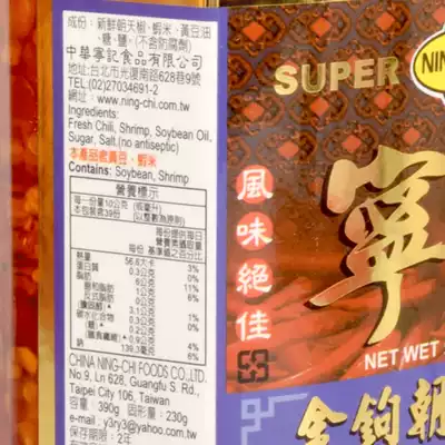 2 bottles of Taiwan imported Ning Ji chili sauce shrimp Taiwan Golden Hook Chaotian chili sauce 390g rice super spicy