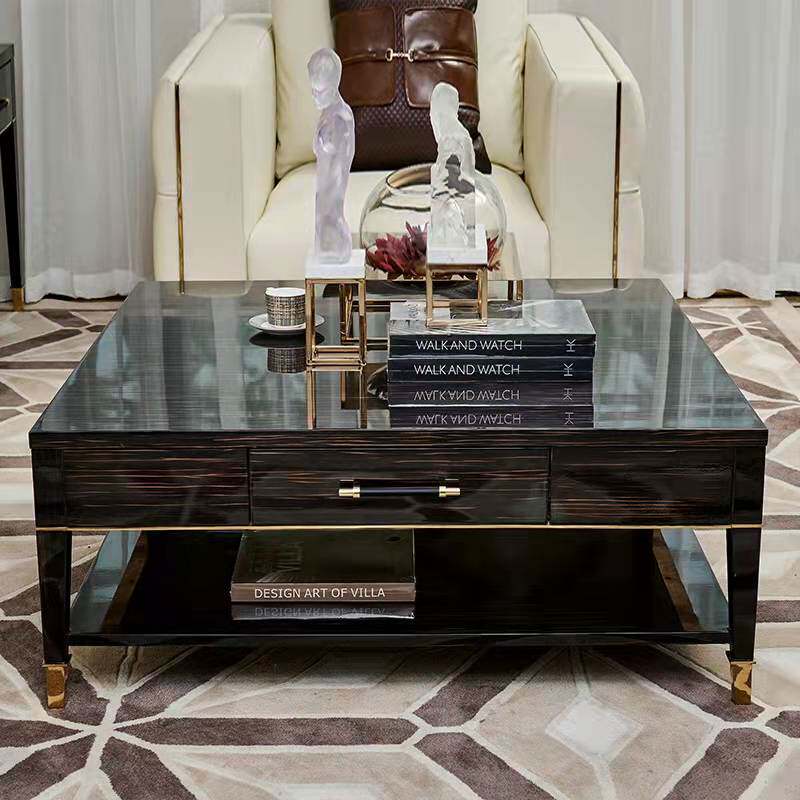 American light luxury coffee table solid wood side table combination solid wood square Hong Kong-style Italian paint corner table tea table sofa side table
