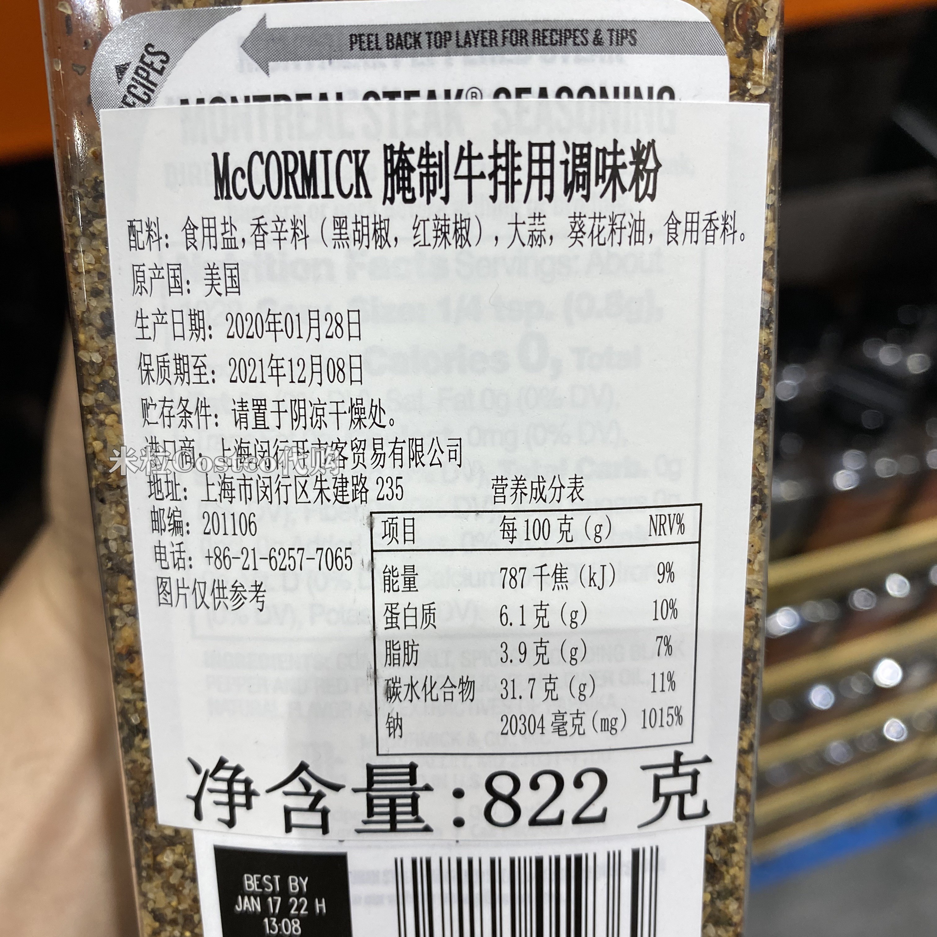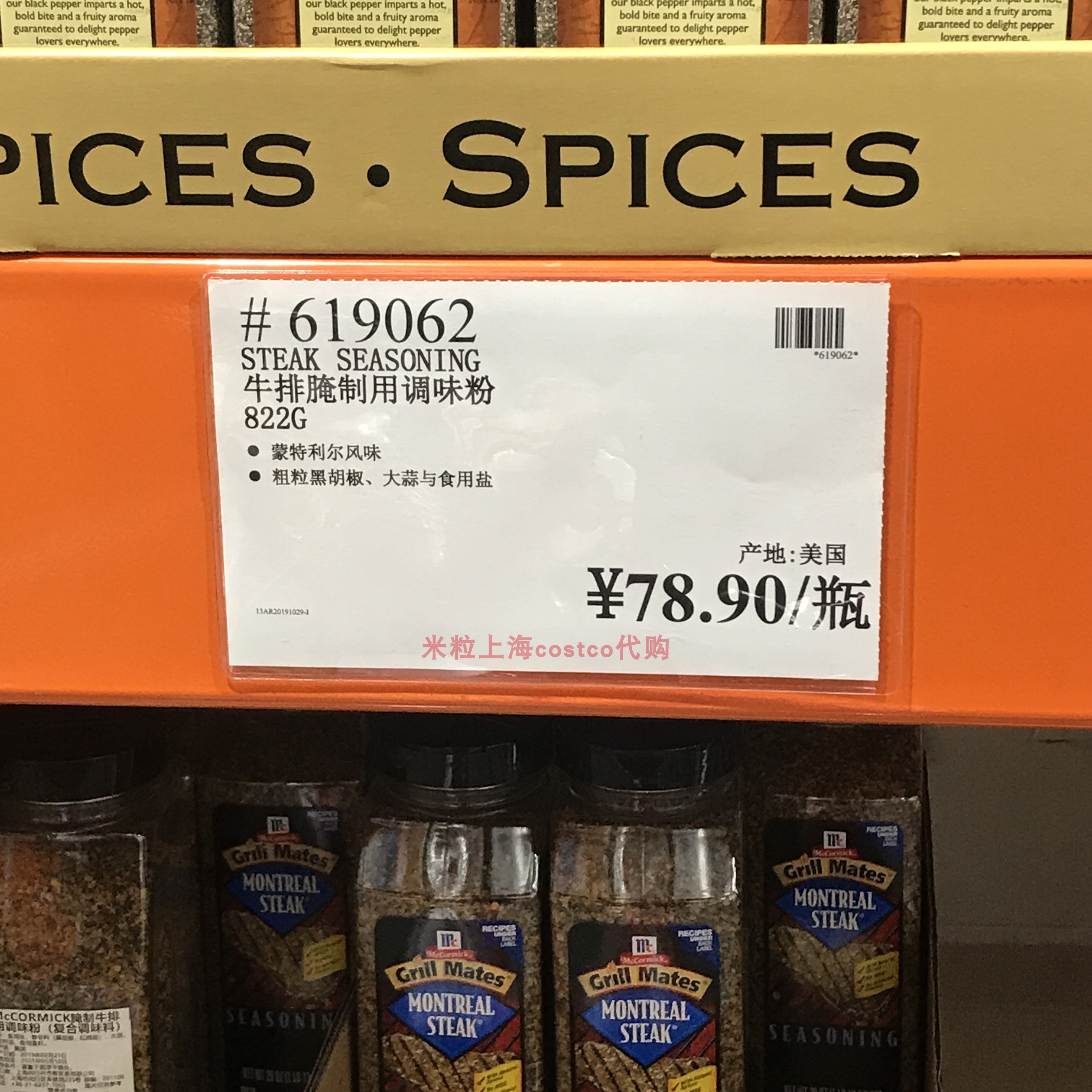 Shanghai Costco Montreal GrillMates pan-fried steak seasoning pig pickpocketing 822g