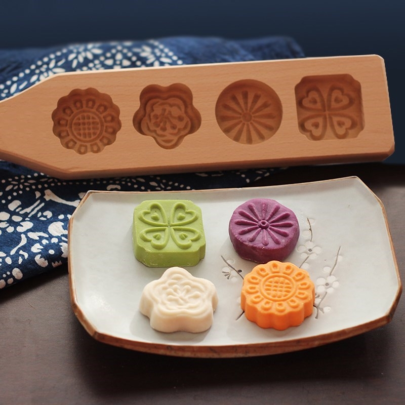 Set of hand-pressed 2019 embossed moon cake print hand-pressed wooden model wooden moon cake mold old-fashioned 75g