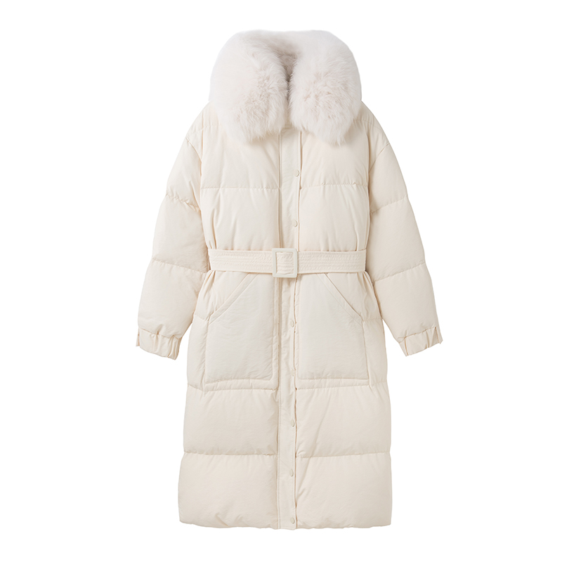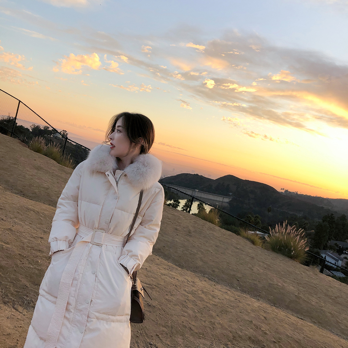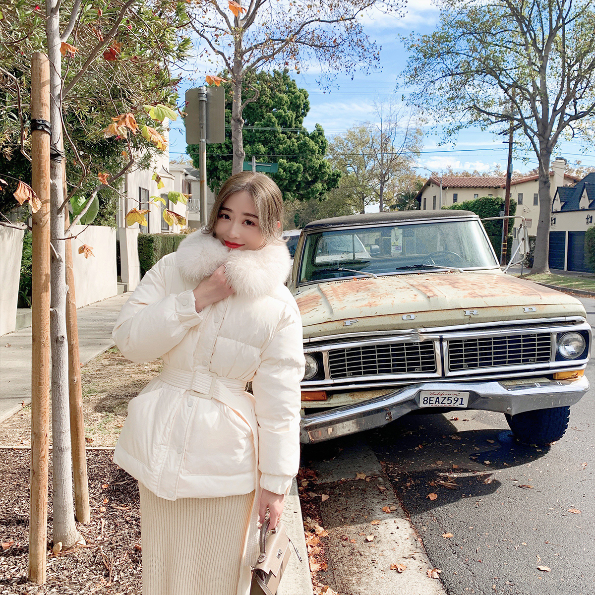 50% Off Clearance Fox Fur Collar White Waist Down Jacket Women's White Duck Down Jacket