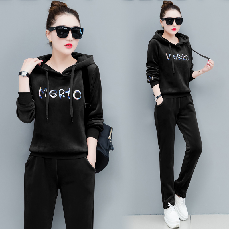 Thickened plus velvet sports suit women's two-piece set 2019 new autumn and winter fashion double-sided gold velvet casual wear sweater