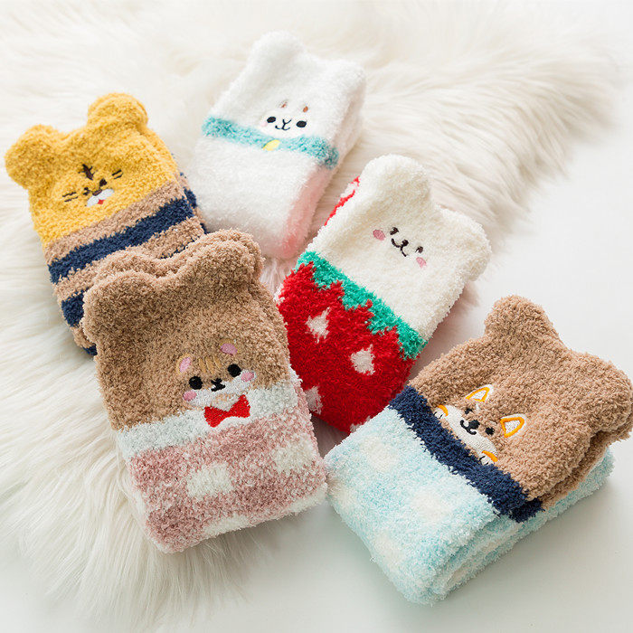 Baby socks cartoon autumn coral velvet thickness plus lap-feed baby leg-guarding socks academic warm reptile socks