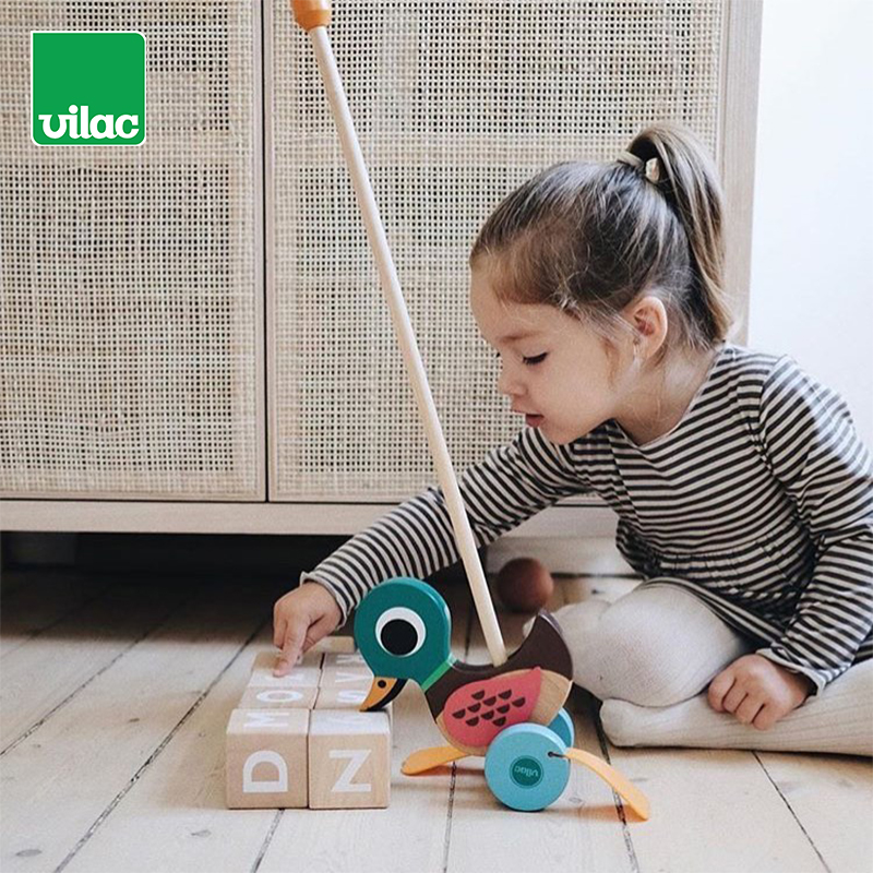 France Vilac Baby Boy Learning Step Wooden Pushback Wooden Pushback Trolley Baby Puzzle Toy 1 year old
