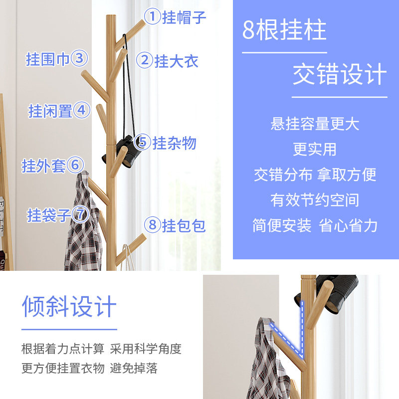 Solid wood cloakhat rack floor home minimalist modern clothes hanger bedroom Easy hanging clothes hanger living room hanging clothes hanger