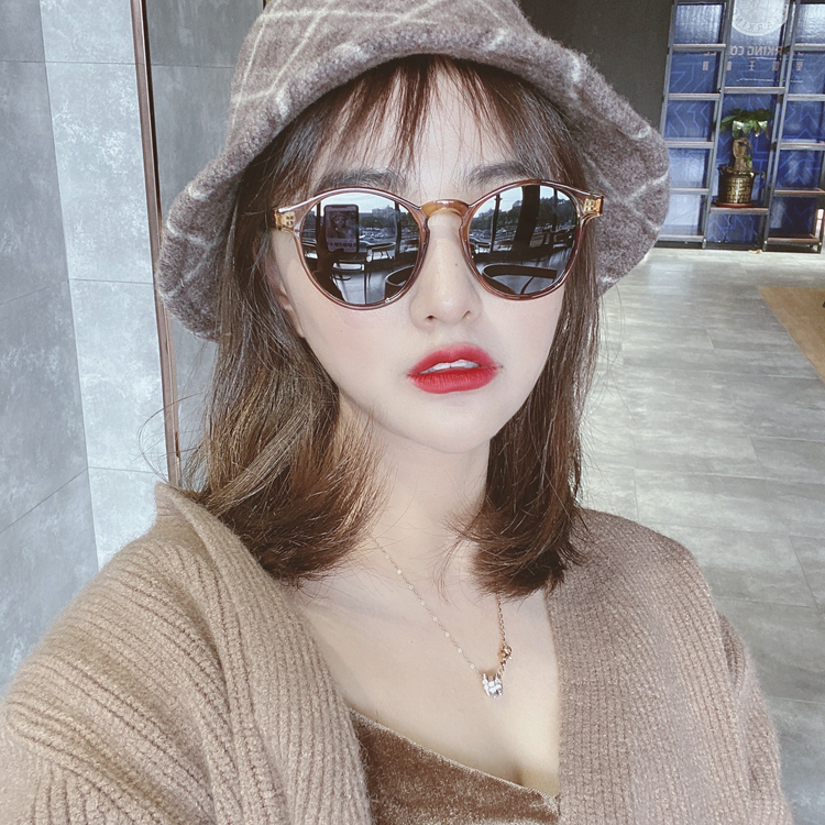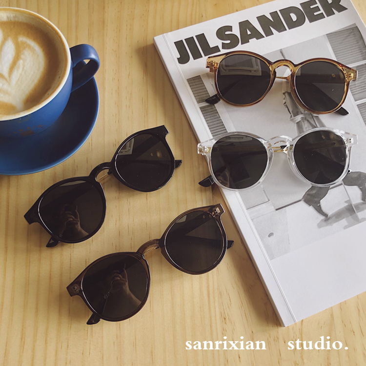 Xu Guanghan same Korean Harajuku style transparent tea brown retro Joker round sunglasses thin polarized sun glasses glasses