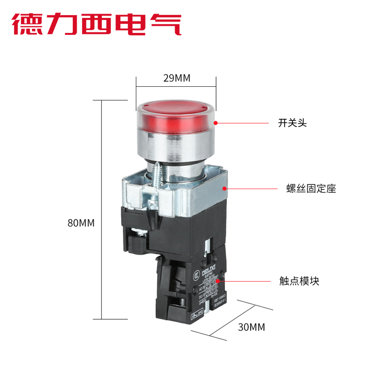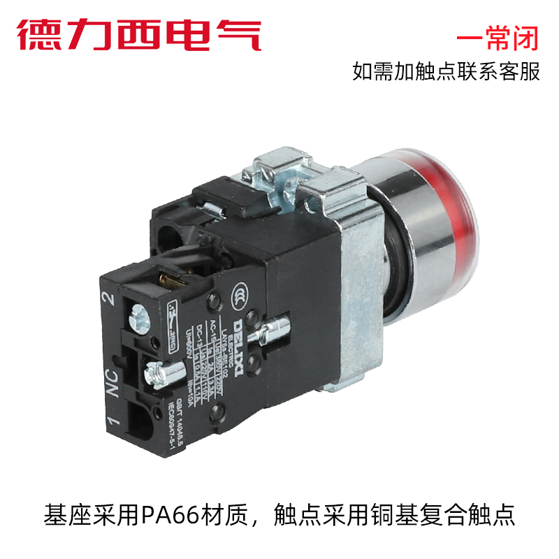 Delixi LAY5-BW3 green with light self-reset 1 normally open one normally closed 22mm metal flat button switch button