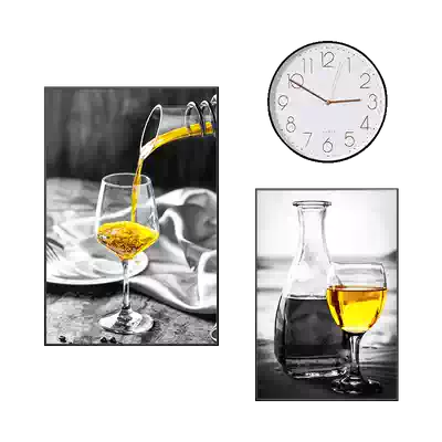 Dining table decoration painting dining room wall decoration clock mural painting three-piece wall clock home dining hall hanging painting