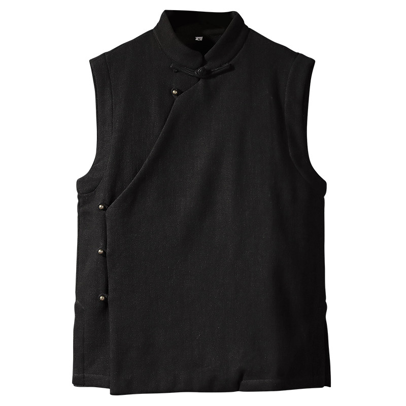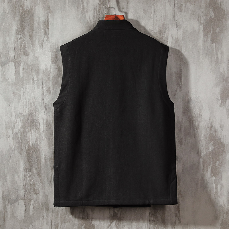 Chinese style plus velvet thick vest winter cotton and linen men's retro wind Chinese style linen mandarin jacket sleeveless vest jacket