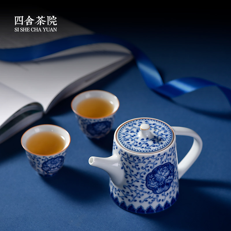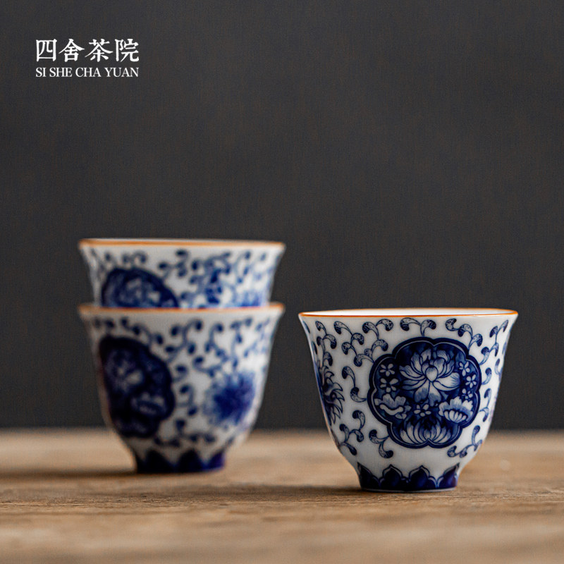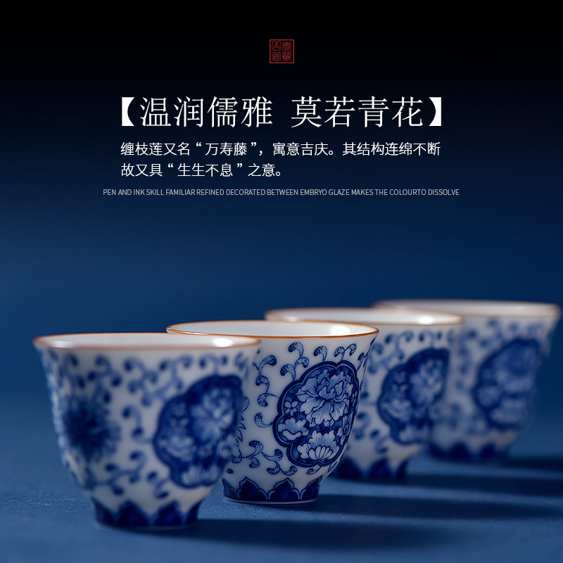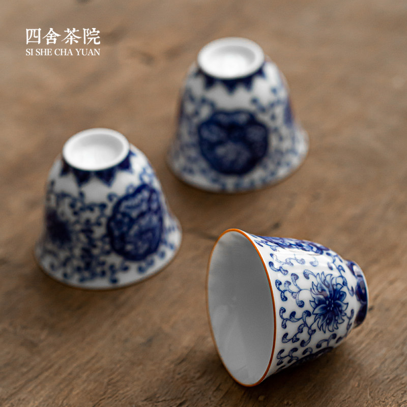 Sishe Teahouse Wanshou vine blue and white ceramic tea cup Jingdezhen Kung Fu tea set Chinese retro small tea cup single cup
