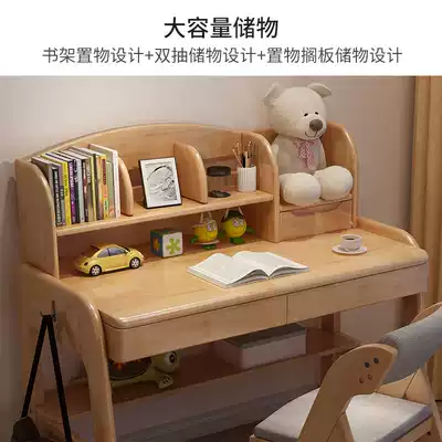 Lifting children's solid wood desk bookshelf combination adjustment height learning table simple household desk for primary and secondary school students