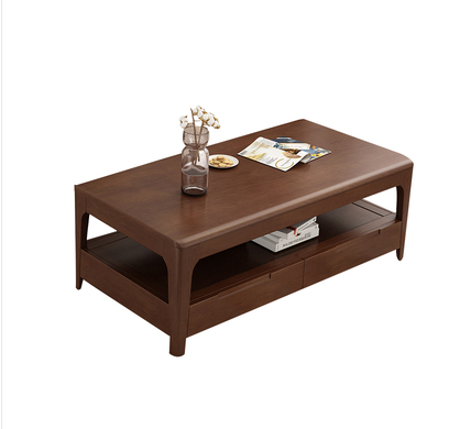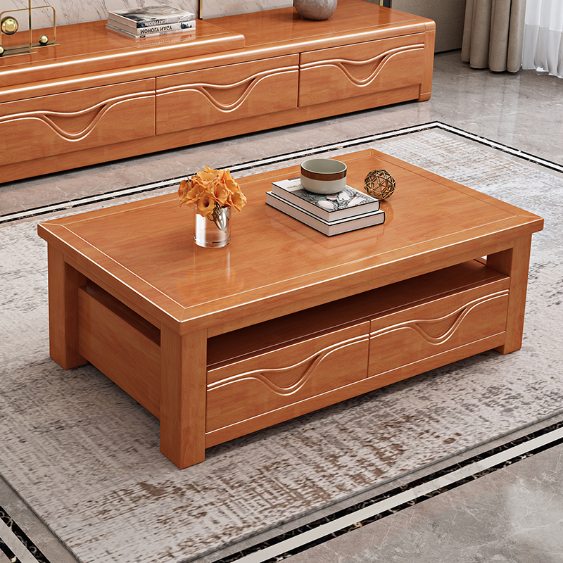 Modern Chinese-style solid wood coffee table simple small apartment tea table home living room simple rectangular coffee table two-tier tea table