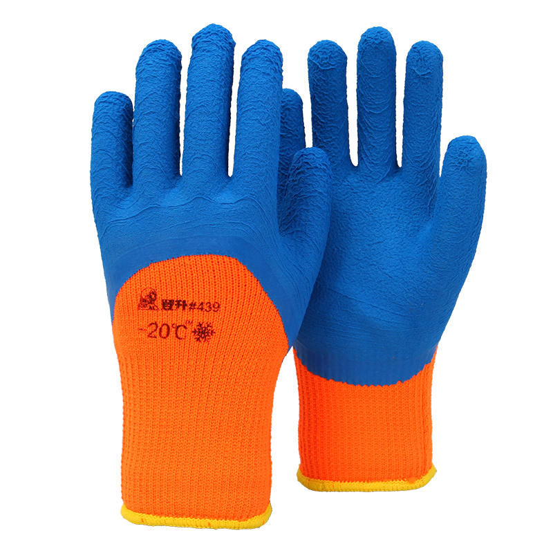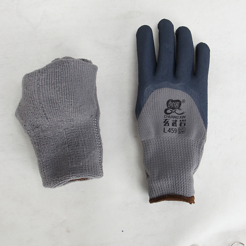 Dengsheng 439 plus velvet thickened rubber labor insurance gloves terry foam non-slip wear-resistant winter cold storage warm gloves