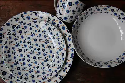 Love blue floral ink and wash export western food household set breakfast cake flat plate soup plate