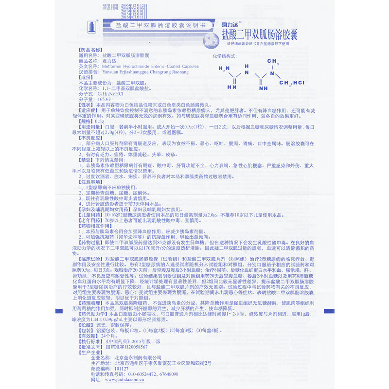 Monarch Lida hydrochloric acid metformin enteric-coated capsule 0 5g * 48 grain case diabetic hyperglycemic hydrochloric acid metformin