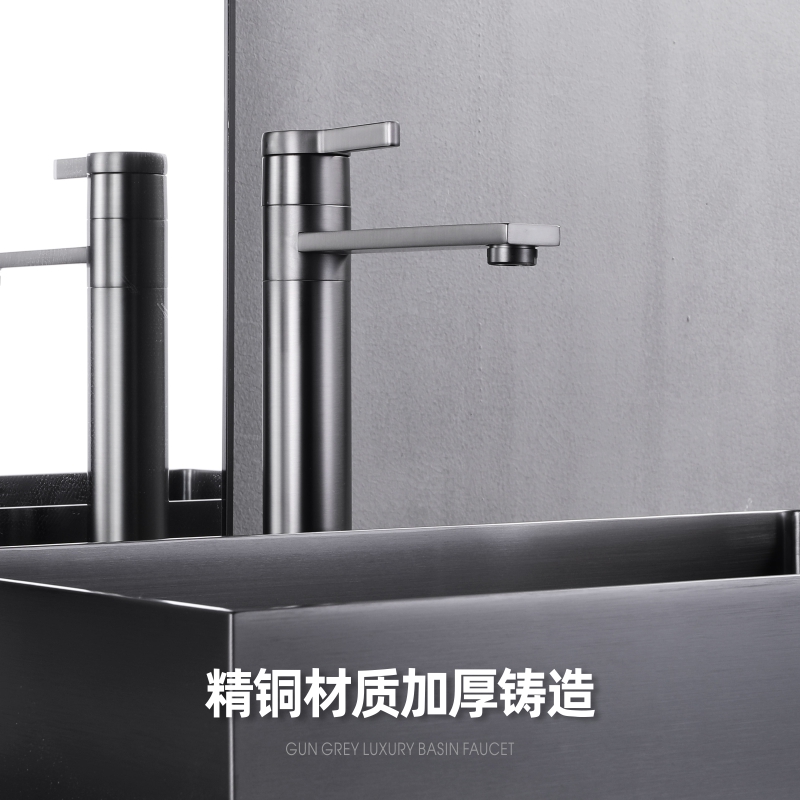 cnsimpsons gun gray rotary faucet washbasin home bathroom above the counter basin full copper heightened bathroom - Taobao