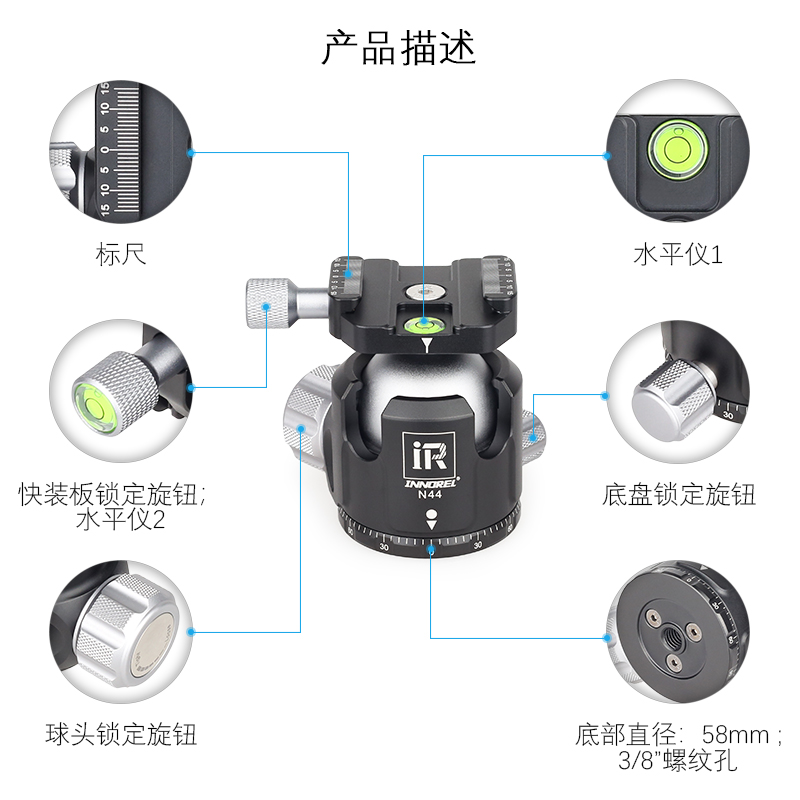 Innoray N44 spherical PTZ outdoor shooting professional low center of gravity panoramic tripod head digital single-eye camera