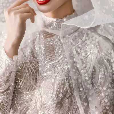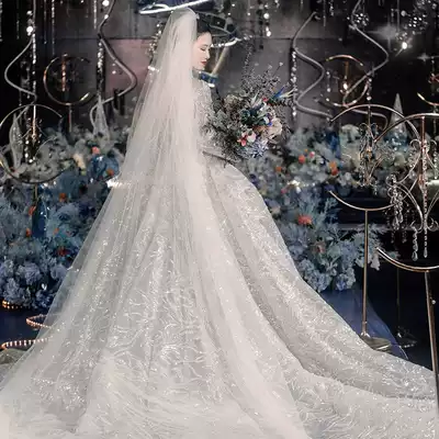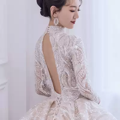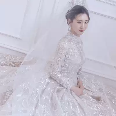 Main wedding dress 2021 new bridal temperament high neck long sleeve big tailing heavy industry luxury simple big size Winter