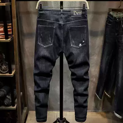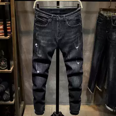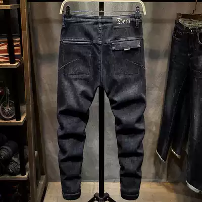 2020 autumn and winter New velvet jeans men slim pipe pants Korean trend thick warm long pants men