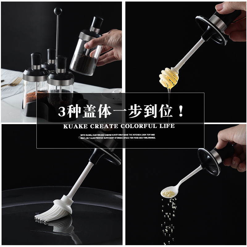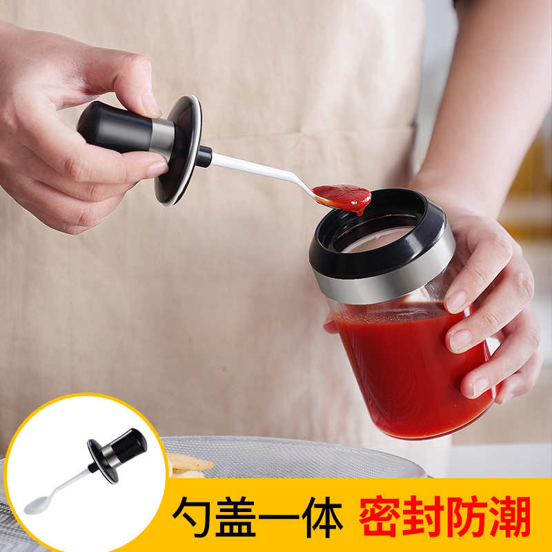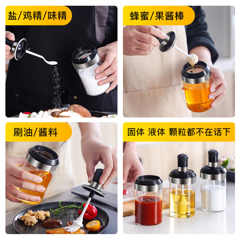 Seasoning bottle glass salt jar kitchen seasoning jar household moisture-proof seasoning jar sugar jar oil pot salt monosodium glutamate seasoning box