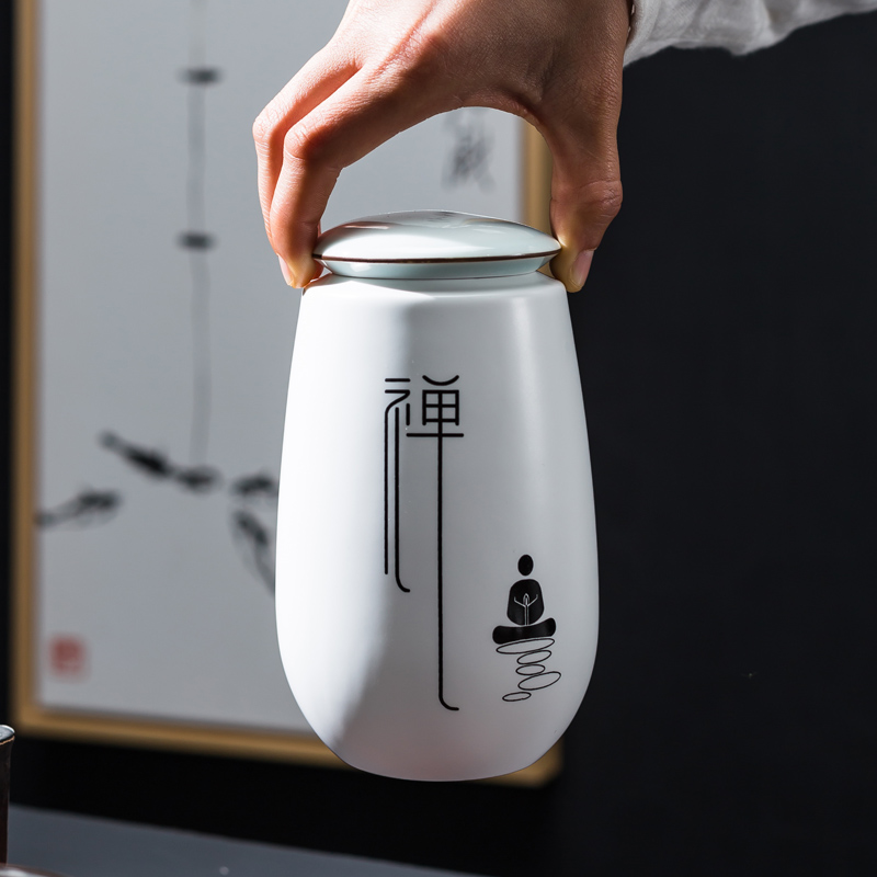 Matte sealed tea pot Zen ceramic Pu'er tea box tea packaging pot sealed storage tank storage tea pot medium size