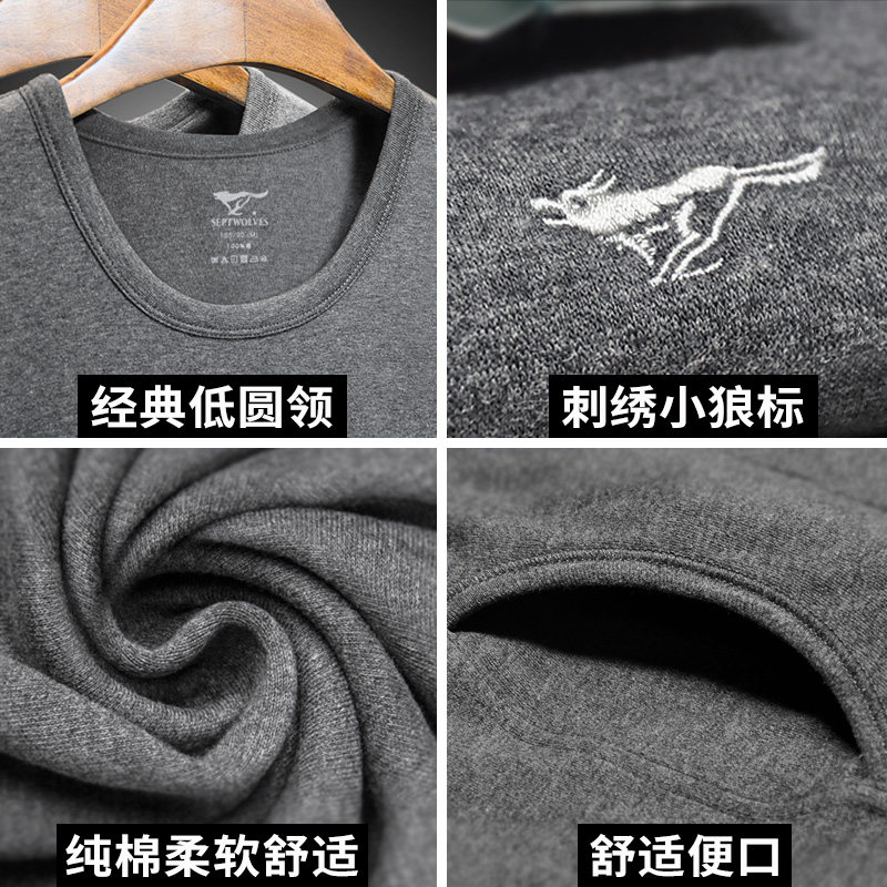 Seven Wolves Men's Underwear Suit Pure Cotton Warm Autumn Clothes Sanitary Pants For Seniors Dad Plus Suede Sanitary Clothing Sanitary Pants