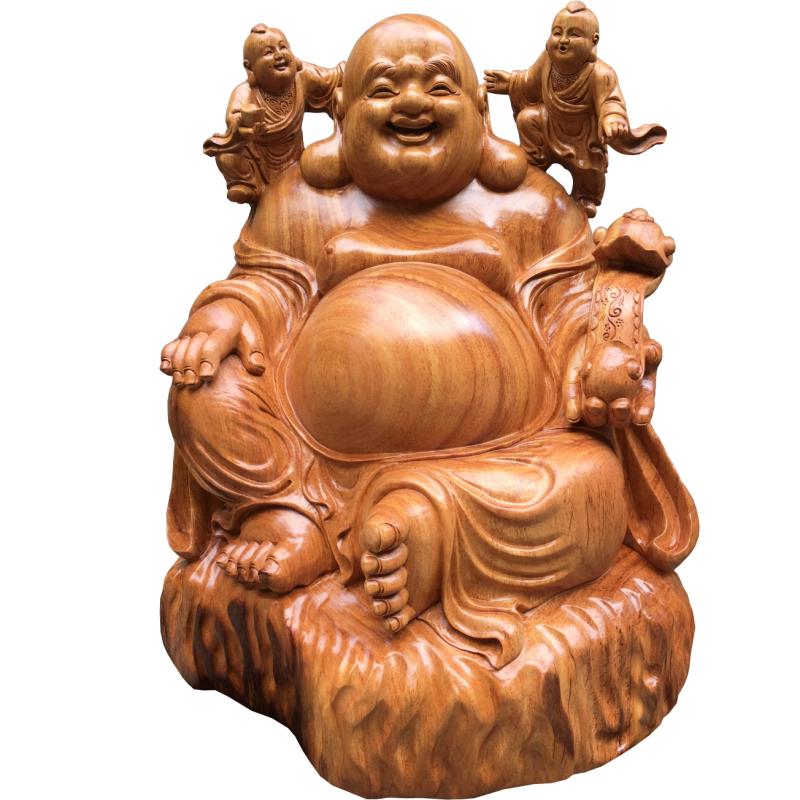 Wood Carving of the Millver Pendulum Pieces of the Treasure Root Carving Solid Wood 5 Zum Dengko Smiling Big Belly Buddha Flowers Pear wood Changhi