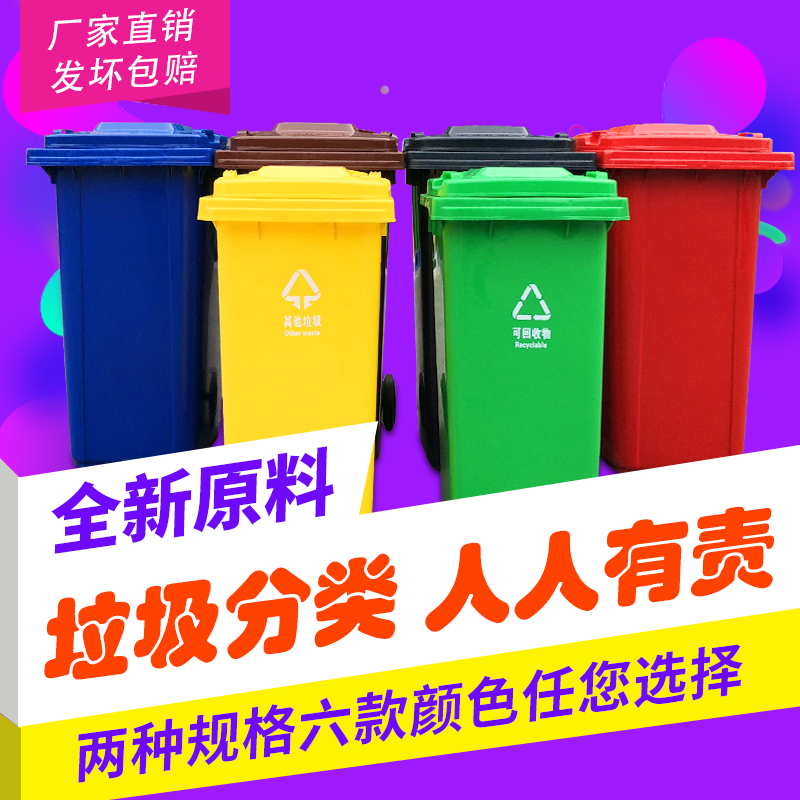 120L zone with cover bin 240L with wheel sanitation large trash bin plastic dry and wet trash classification bin