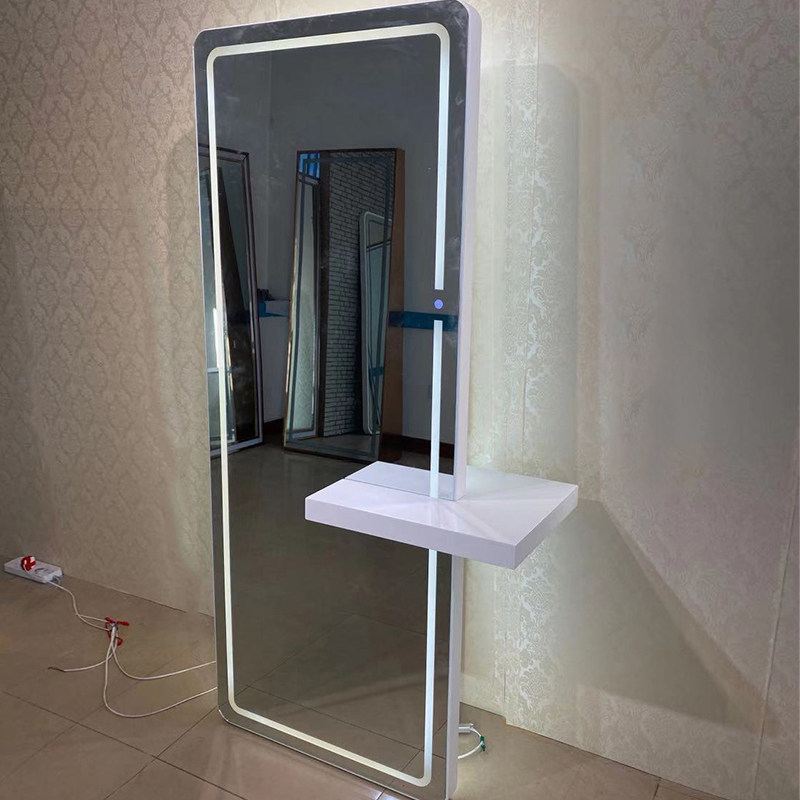 Hairdresdist Mirror Desk Beauty Hair Salon Hair Salon Independent Wall Cut Hair Makeup Mirror Son With LED Light Touch Full Body Mirror