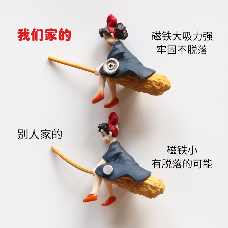 Anime Magnetic Refrigerator Magnets 3D Three-dimensional Small Broom Girl Animation Cartoon Cute Decorative Iron-absorbing Stone Magnets