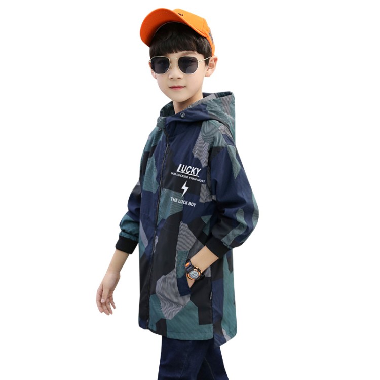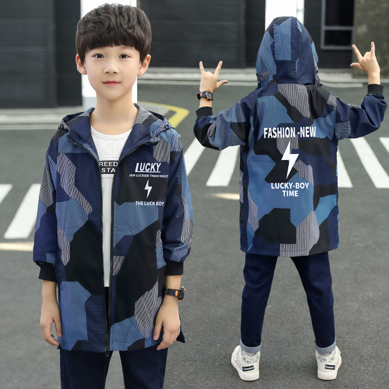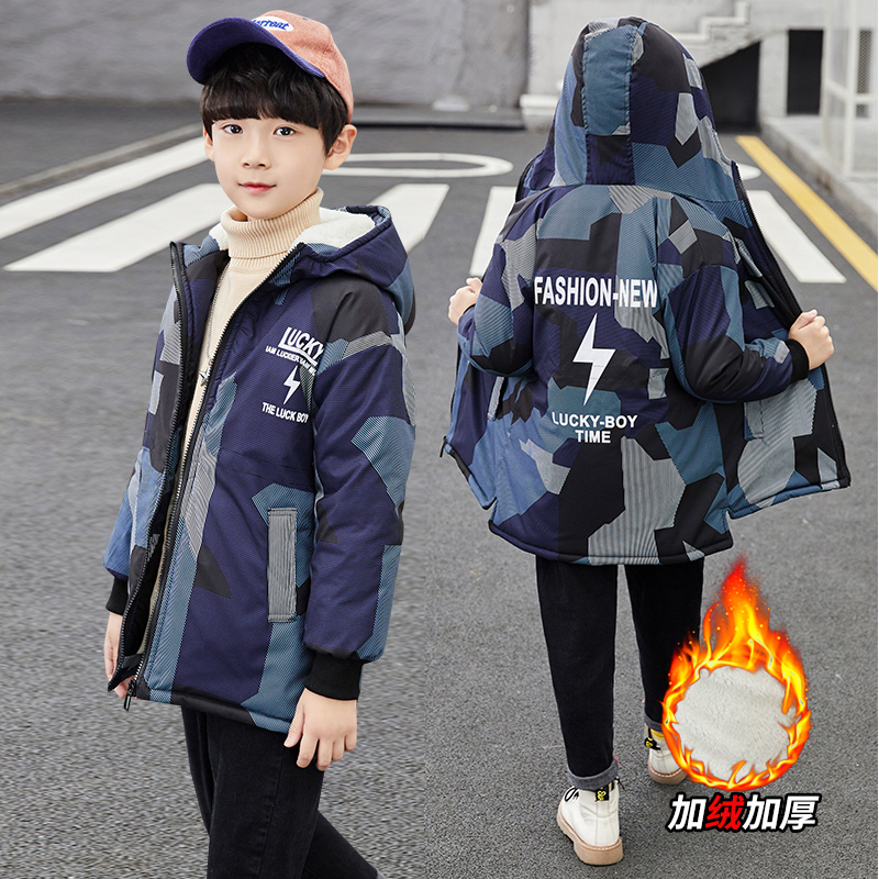 Boy Thickened Coat Autumn Winter Clothing 2021 New Foreign Pie children camouflages with long version plus velvety windsurwear