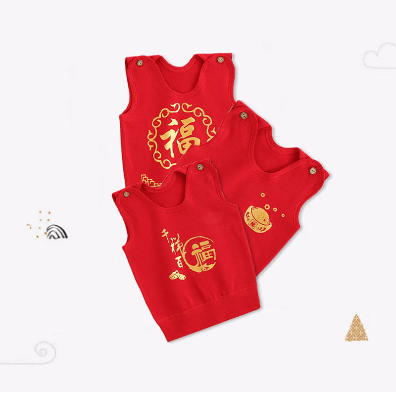 Big Red Little FuXing Belly Guard Vest Big Red Ruyi Belly Guard Vest Big Red Fu Zi Belly Guard Vest Big Red Baifu Qianxiang Belly Guard Vest Big Red Double Layer Belly Guard Big Red Straight Tank Top