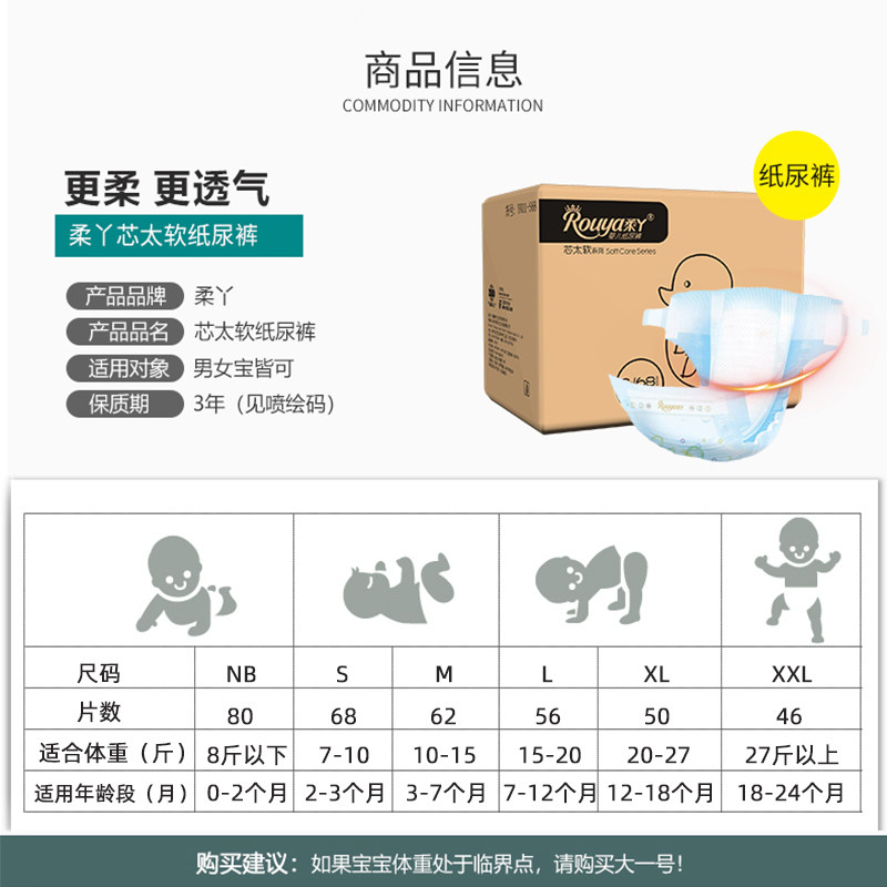 Rouya diaper core is too soft XL50 official flagship newborn baby breathable sheet Rouya diaper shop