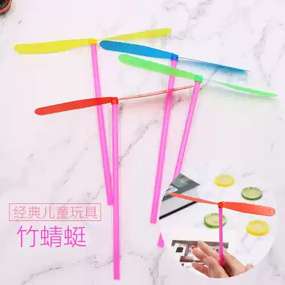 Nostalgic classic bamboo dragonfly hand rubbing plastic double flying leaf flying Flying Fairy hand rubbing bamboo dragonfly night market carpet gift wholesale