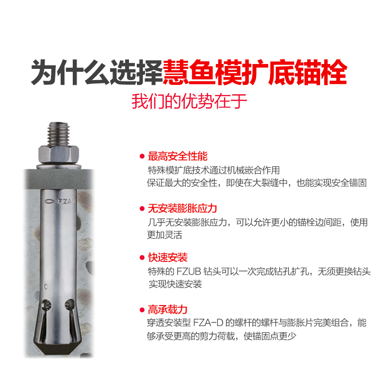 Hui fish mechanical anchor bolt imported from Germany FZA M12 M16 M20 building special mold expansion bottom self-cut bottom anchor