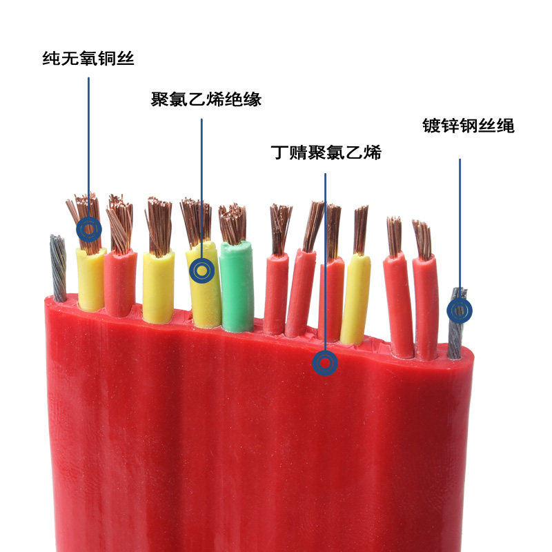 Crane flat cable driving control power cord 3*6 6*1 5 double steel wire national standard copper core flat cable