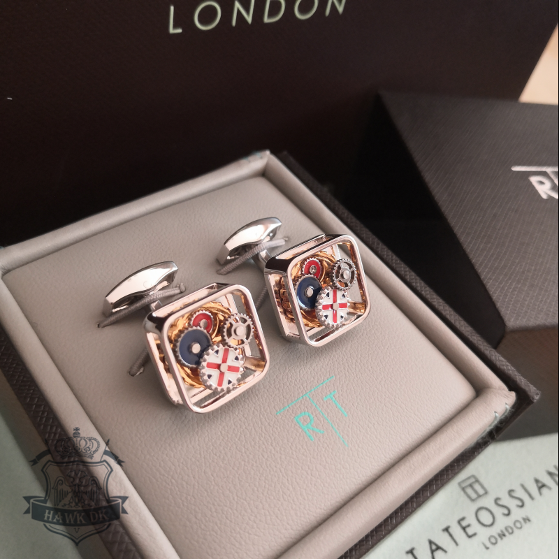 Spot British Tateossian RT King of Cufflinks Square Blue Enamel color gear mechanical Men's gift