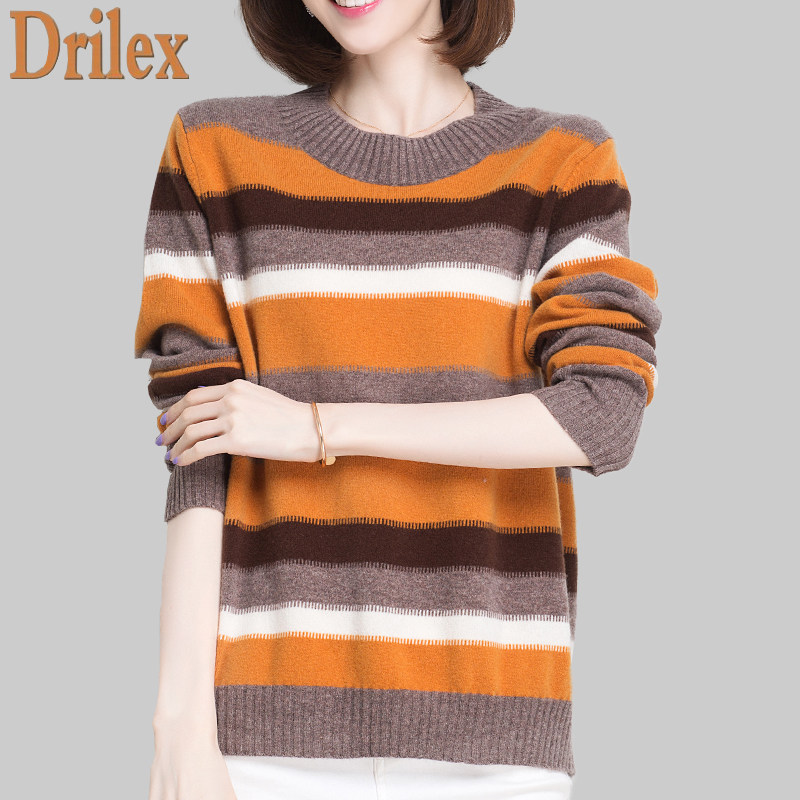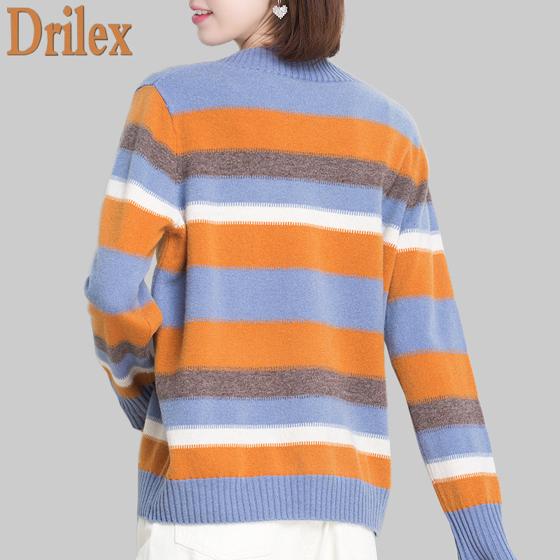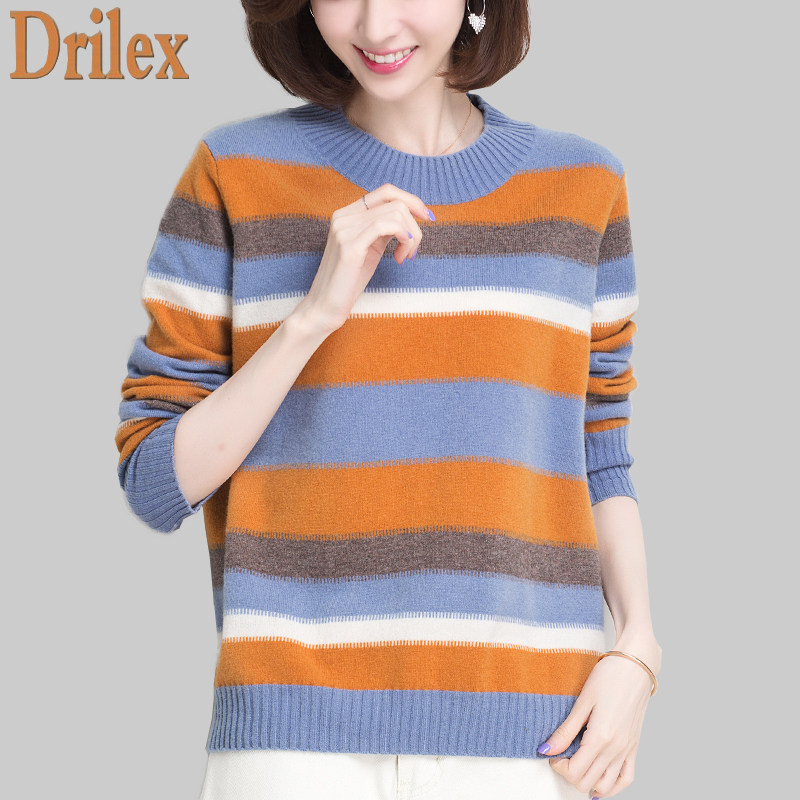 100%pure cardigan women's stripes 2020 new loose pullover temperament sweater fashion wild knitted base shirt